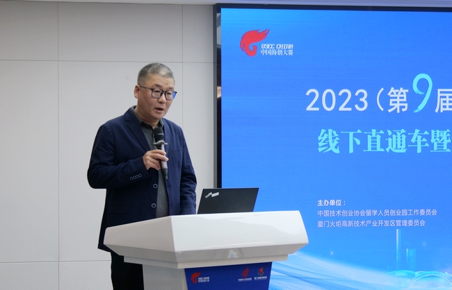 522日,2023(第九屆)中國海歸創業大賽線下直通車暨“海創中國”導師行(廈門站)在廈門留學人員創業園圓滿舉辦。活動由中國技術創業協會留學人員創業園工作委員會、廈門火炬高技術產業開發區管理委員會共同主辦,廈門高新技術創業中心有限公司(廈門留學人員創業園)、廈門高新科創天使創業投資有限公司、火炬高新區海內外高層次人才創業服務驛站承辦。中國技術創業協會副理事長、留學人員創業園工作委員會專職副會長兼秘書長郎靖,留創園工委會副秘書長胡頌華,廈門高新技術創業中心有限公司總經理鄭鞏固等相關單位負責人及5位評委導師出席活動。