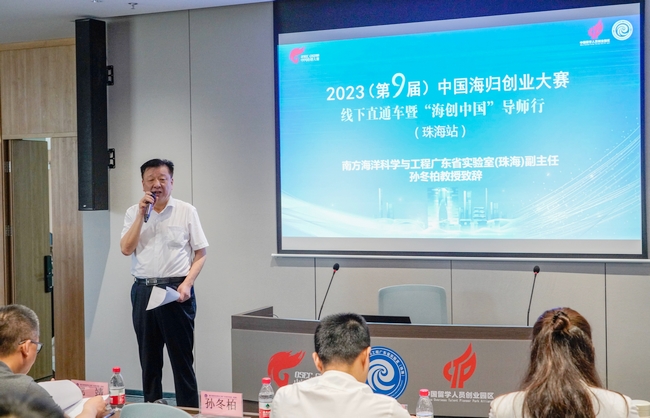 5月17日,2023(第九屆)中國海歸創(chuàng)業(yè)大賽線下直通車暨“海創(chuàng)中國”導(dǎo)師行活動(珠海站)在南方海洋科學(xué)與工程廣東省實驗室(珠海)(以下簡稱南方海洋實驗室)成功舉辦。活動由中國技術(shù)創(chuàng)業(yè)協(xié)會留學(xué)人員創(chuàng)業(yè)園工作委員會主辦,南方海洋實驗室承辦,珠海市香洲區(qū)科技創(chuàng)新促進中心協(xié)辦。中國技術(shù)創(chuàng)業(yè)協(xié)會副理事長、留學(xué)人員創(chuàng)業(yè)園工作委員會專職副會長兼秘書長郎靖,留創(chuàng)園工委會副秘書長胡頌華,南方海洋實驗室副主任孫冬柏,珠海市香洲區(qū)科技創(chuàng)新促進中心副主任萬志等相關(guān)單位負(fù)責(zé)人出席。來自廣州歸谷科技園有限公司、北京疆亙資本、華鍔資本、源起科創(chuàng)基金、北京智銀投資、中信建投資本、北京瑯澤律師事務(wù)所的7位評委導(dǎo)師和6個優(yōu)秀海歸團隊的代表參加了本次活動。
