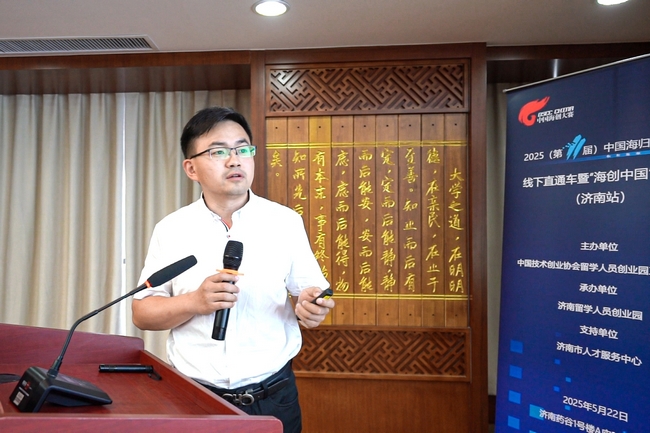 522日,由中國技術創業協會留學人員創業園工作委員會主辦、濟南留學人員創業園承辦、濟南市人才服務中心支持的2025(第11屆)中國海歸創業大賽線下直通車暨海創中國導師行(濟南站)活動在濟南藥谷成功舉辦。中國技術創業協會副理事長、留學人員創業園工作委員會專職副會長兼秘書長郎靖出席活動并講話,濟南留學人員創業園、創業服務中心副主任劉麗致辭。