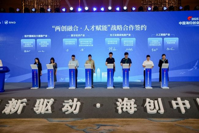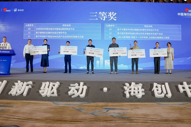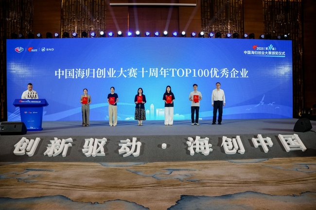 在頒獎儀式中,科技部、工信部、致公黨中央等大賽指導單位以及江蘇省、蘇州市有關部門領導為獲獎項目頒發了獎杯、獎金和證書?,F場還作了中國海歸創業大賽10周年總結,全面回顧了大賽舉辦10屆以來所重點開展的工作和取得的成果;發布了中國海歸創業大賽10周年TOP100優秀企業榜單,根據歷屆參賽企業近年來在企業成長性、科技創新力、行業影響力、地區貢獻度等方面進行綜合評定,有海柔創新、青禾晶元、杉數科技、斯乾智駕、漢陽科技、識光芯科、景略半導體、圣德醫療、英磁新能源等100家優秀企業入選。此外,活動還為在大賽組織服務中作出重要貢獻、給予推動支持的一批單位頒發了中國海歸創業大賽10周年特別貢獻獎和組織貢獻獎,并舉行了中國海歸創業大賽成果轉化基地啟動儀式及項目簽約儀式。